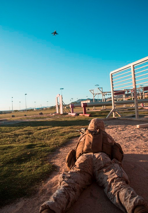 Một lính thủy quân đứng kiểm tra để đảm bảo không bỏ sót ai trước khi máy bay cất cánh. Khi hoàn thành nhiệm vụ, lực lượng này cũng rời khỏi khu vực nguy hiểm.