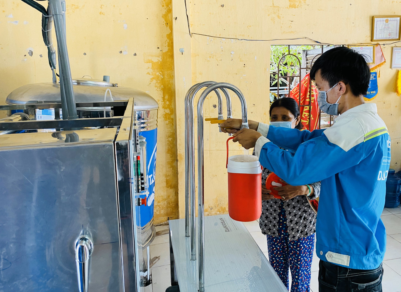 Người dân chở nước Địa phương được lắp đặt máy lọc nước nhiễm mặn Daikiosan đều do Tỉnh Đoàn đề xuất theo tiêu chí nằm trong khu vực bị ảnh hưởng nặng nề do xâm nhập mặn, bị thiếu nước sạch trầm trọng và người dân có hoàn cảnh khó khăn. Máy được lắp đặt tại trụ sở ấp/xã để người dân dễ dàng lấy nước, dưới sự quản lý của chính quyền địa phương.