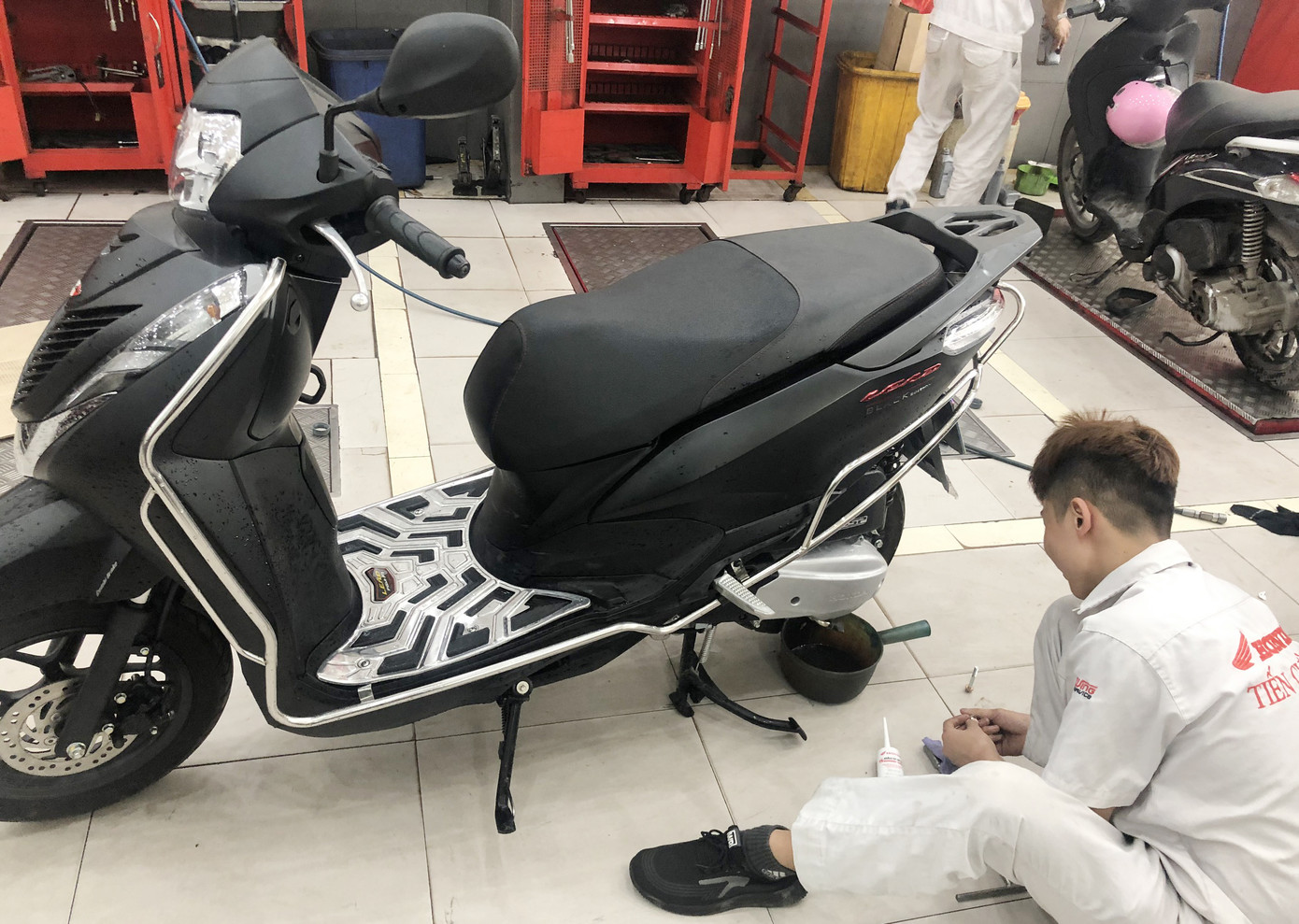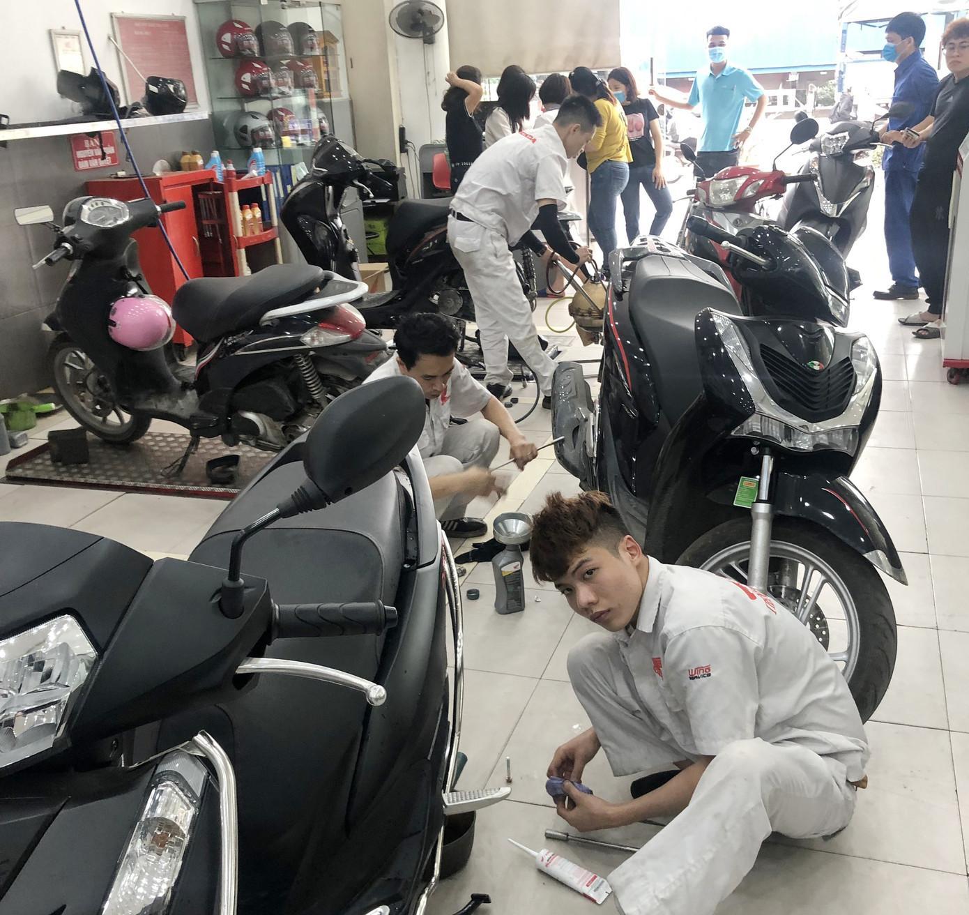 Người dân xếp hàng tại khu vực Thay dầu miễn phí để được một lần trải nghiệm dịch vụ của HEAD Tiến Cường.