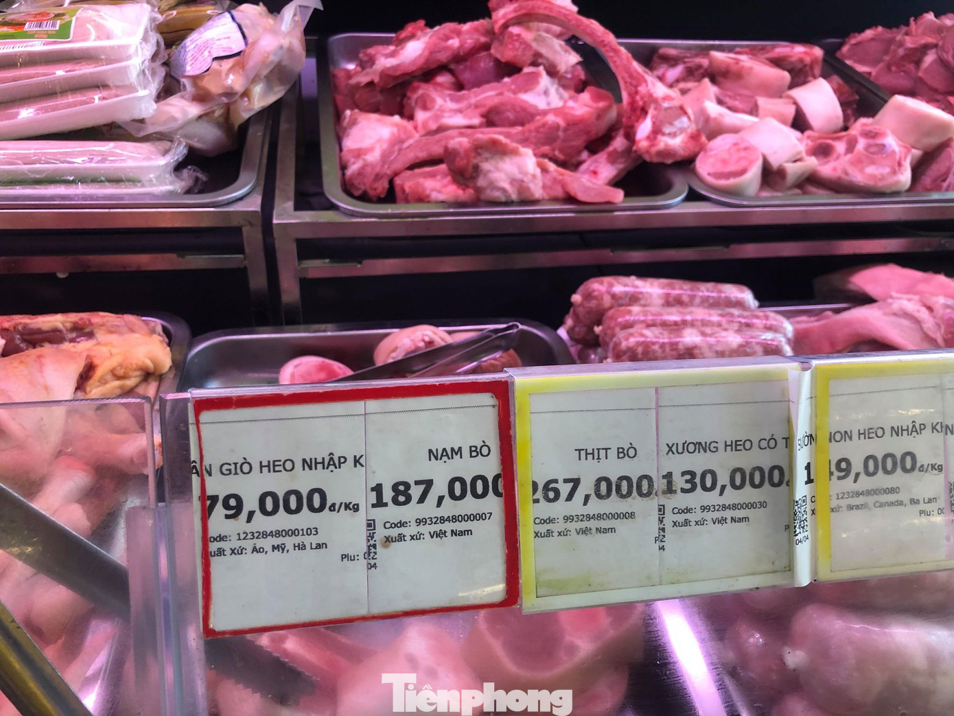 Nhân viên siêu thị cho biết, heo nhập có nguồn gốc từ Mỹ, Hà Lan, Áo, Brazil, Ba Lan, Canada. Heo nhập thường ít mỡ hơn heo trong nước, xương cũng nhỏ hơn và cắt thành khoanh đều nhau. Về giá, heo ngoại giá khá rẻ, như sườn non heo ngoại chỉ 149.000 đồng/kg, còn sườn non heo Việt Nam là 209.000 đồng/kg (đây là giá heo đã giảm trong mấy ngày gần đây - PV). Tính ra mỗi kg sườn non của heo ngoại rẻ hơn heo nội tầm 60.000 đồng/kg.