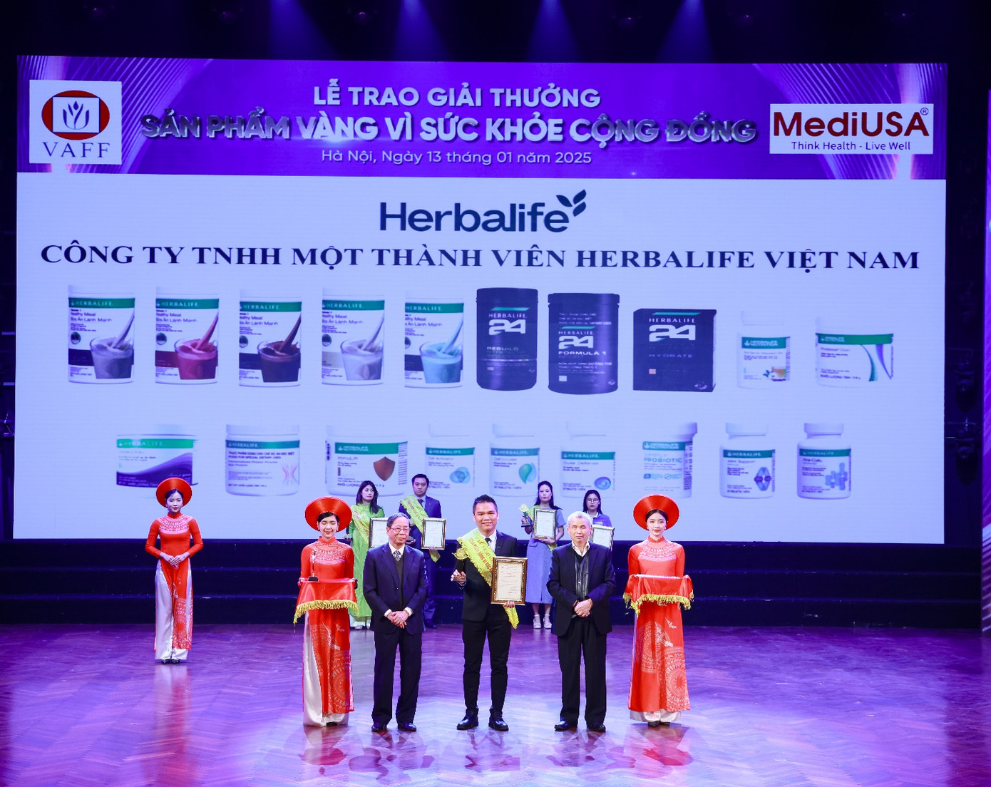 Herbalife Việt Nam, một trong những công ty hàng đầu về sức khỏe và thể chất, vinh dự được trao giải thưởng “Sản phẩm vàng vì sức khỏe cộng đồng” bởi Hiệp hội Thực phẩm Chức năng Việt Nam (VAFF) lần thứ 10 liên tiếp. Giải thưởng “Sản phẩm vàng vì sức khỏe cộng đồng” được tổ chức nhằm tôn vinh các sản phẩm hỗ trợ sức khỏe được thị trường đón nhận mạnh mẽ và khuyến khích việc cải thiện chất lượng, an toàn và tính hiệu quả của các sản phẩm này trong việc nâng cao sức khỏe cộng đồng.