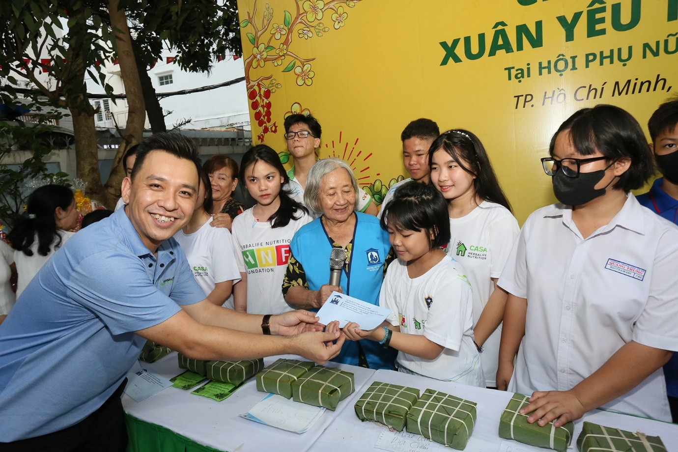 Theo đó, tình nguyện viên gồm các thành viên độc lập và nhân viên Herbalife Việt Nam mang đến cho các em nhiều niềm vui thông qua những hoạt động ý nghĩa như tổ chức chương trình gói bánh chưng, tặng quà Tết và các dụng cụ học tập cho các em.