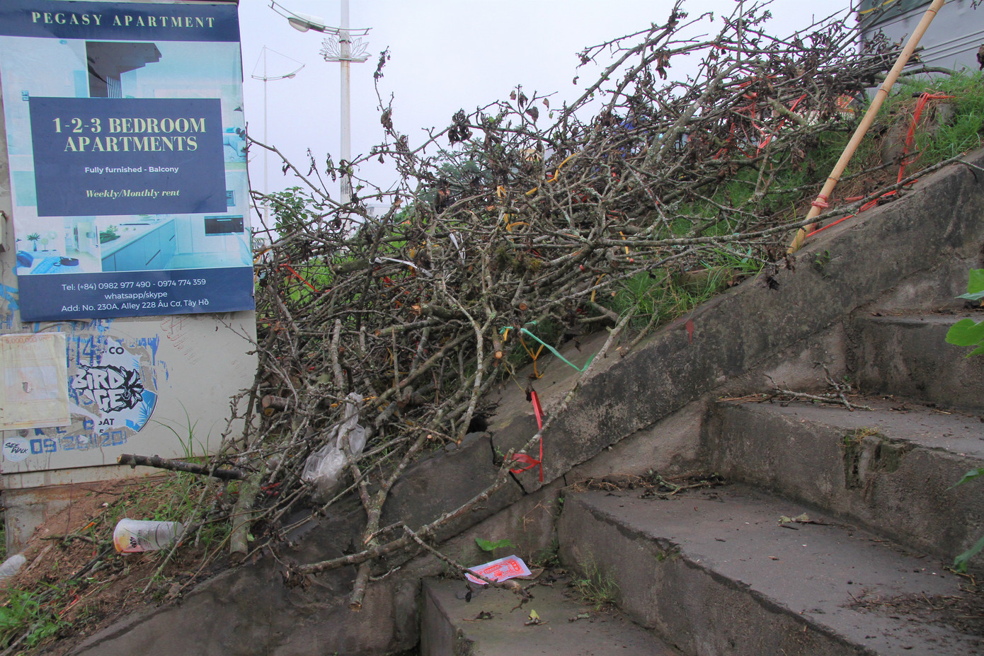 Thế nhưng sau một thời gian, cành lê bắt đầu khô héo, rụng hoa, hư hỏng và không thể bán được nữa thì dân buôn lại “bỏ của chạy lấy người”, để lại những đống cành cây khô héo, nằm ngổn ngang, nhếch nhác hai bên triền đê Âu Cơ, quanh khu vực chợ hoa Quảng An.