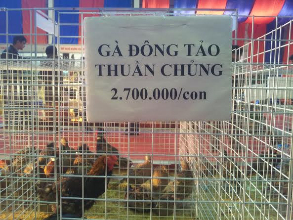 Theo vị chủ nhân của gian hàng giống gà Đông Tảo thuần chủng khi ấp trứng thành công cũng đã rất khó, 10 quả chỉ 4 quả nở. Khi nuôi cũng rất khó khăn nên mới có giá cao như vậy.