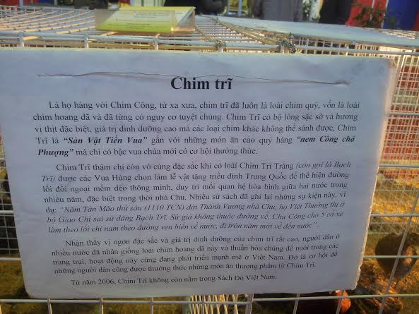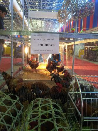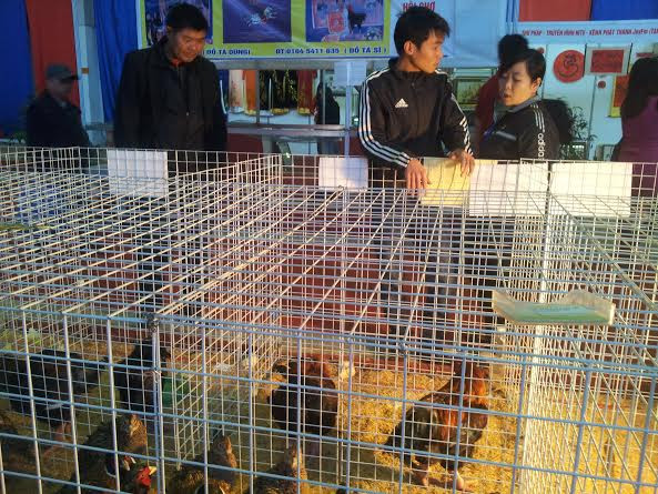 Ngoài các giống gà kể trên thì các gian hàng còn lại có gà Hồ, chim trĩ cũng có giá vài triệu đồng/con. Hầu hết các gian hàng này thì số lượng đã vơi dần. Anh Dũng bán gà 9 cựa cho biết, từ khi khai mạc đến nay đã bán gần trăm con gà. “Do số lượng khách mua nhiều nên tôi đang liên hệ lấy thêm hàng nhưng rất khó vì nhiều người biết tiếng gà 9 cựa Tân Sơn nên họ đã đến tận nơi gom hàng rất nhiều”.