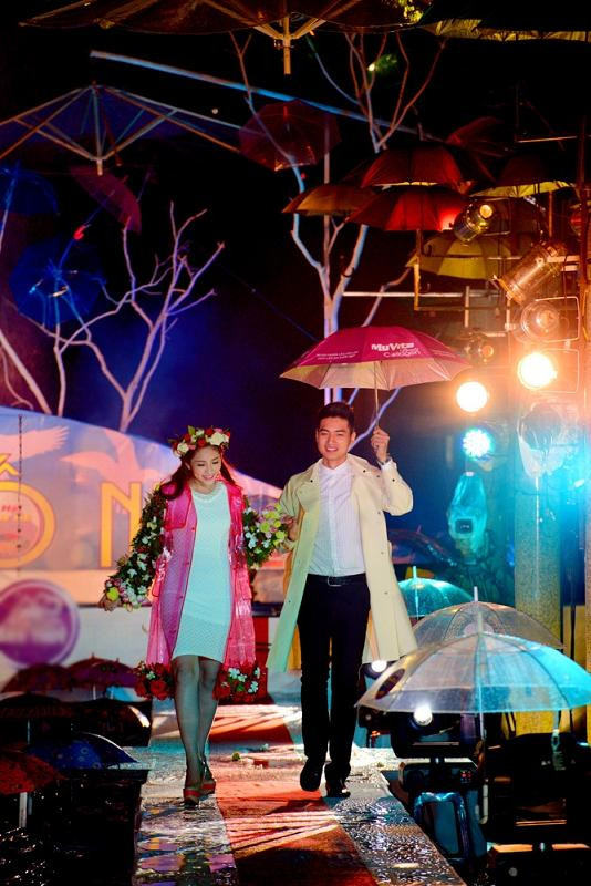 Thu Thảo và Duy Linh đã cùng tham gia diễu hành trên con đường mưa nhân tạo ấn tượng.