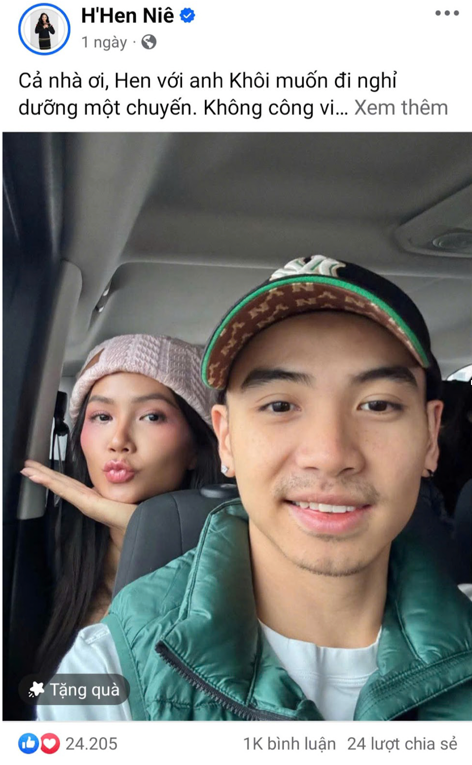 Câu chuyện càng rõ ràng hơn khi Tuấn Khôi – chồng của H’Hen – cũng nhập cuộc, đăng một dòng ngắn hài hước: