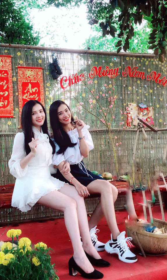 Hoa khôi Cần Thơ Thuý Vi và cô bạn thân cùng chọn trang phục màu trắng khi đi chơi đầu năm.