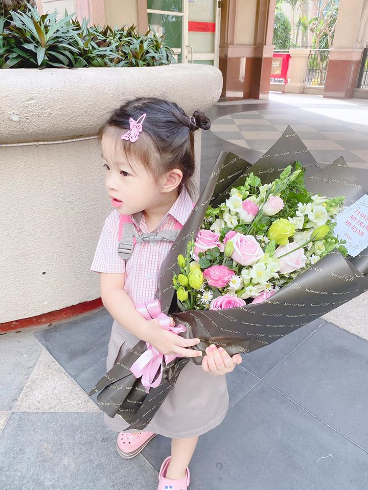 Á hậu Diễm Trang khoe ảnh con gái ôm hoa đi tặng cô giáo nhân ngày Nhà giáo Việt Nam 20/11.