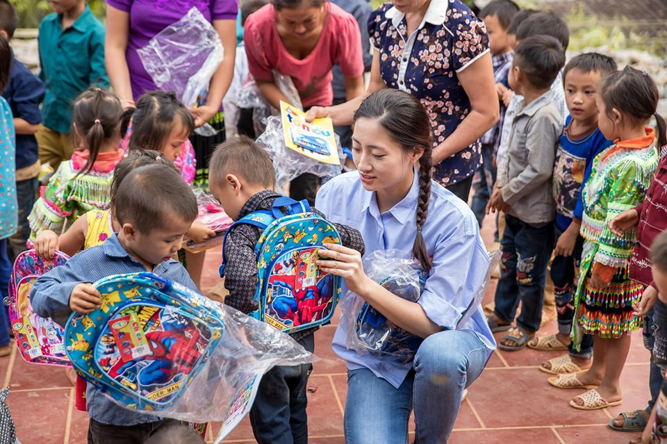 Hoa hậu Lương Thuỳ Linh tiếp tục dự án Nhân ái của mình tại xóm Lũng Lìu, xã Dân Chủ, huyện Hòa An, tỉnh Cao Bằng.