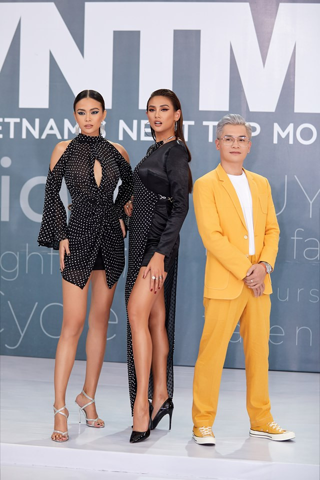 Á hậu Mâu Thuỷ ngồi ghế cố vấn cuộc thi Vietnam's Next Top Model 2019, bên cạnh host Võ Hoàng Yến và giám khảo Nam Trung.