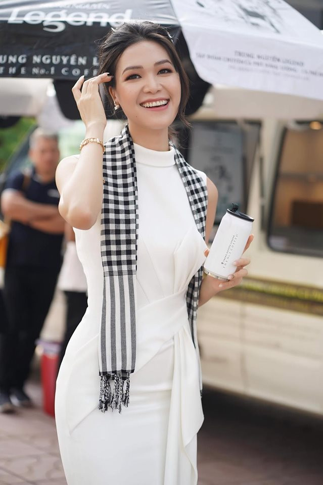Với mái tóc uốn xoăn nhẹ và bộ váy trắng đơn giản, Hoàng Thuỳ vẫn gây được sự chú ý nhờ thần thái hơn người của mình.