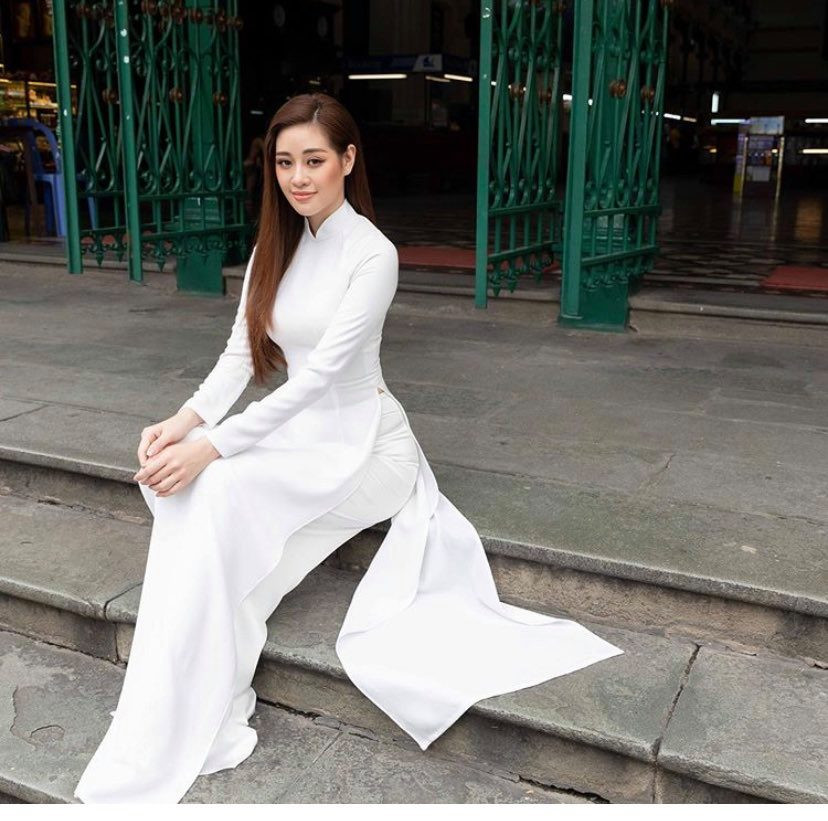 Khánh Vân dịu dàng trong tà áo dài trắng. Gửi những lời chúc tốt đẹp đến các sĩ tử chuẩn bị thi THPT Quốc gia 2020