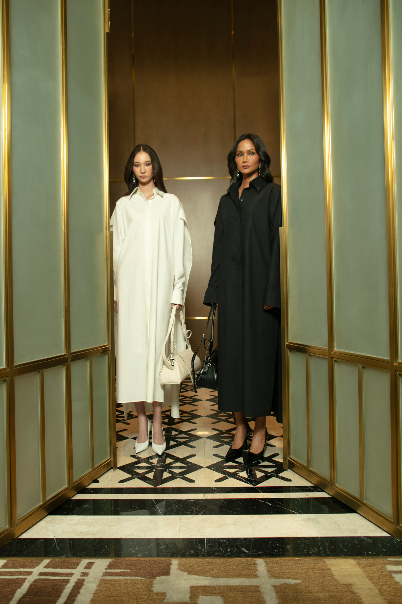 Bên cạnh loạt váy áo được thiết kế tinh xảo, ‘nàng Hậu’ còn được đánh giá cao về khả năng “cân đồ” khi khoác lên mình mẫu đầm sơ mi dáng oversized từ vải poplin. Thiết kế mang tính ứng dụng cao, gần gũi với nhịp sống hiện đại, được phục sức bằng túi xách cũng như giày, đều từ NTK Công Trí.