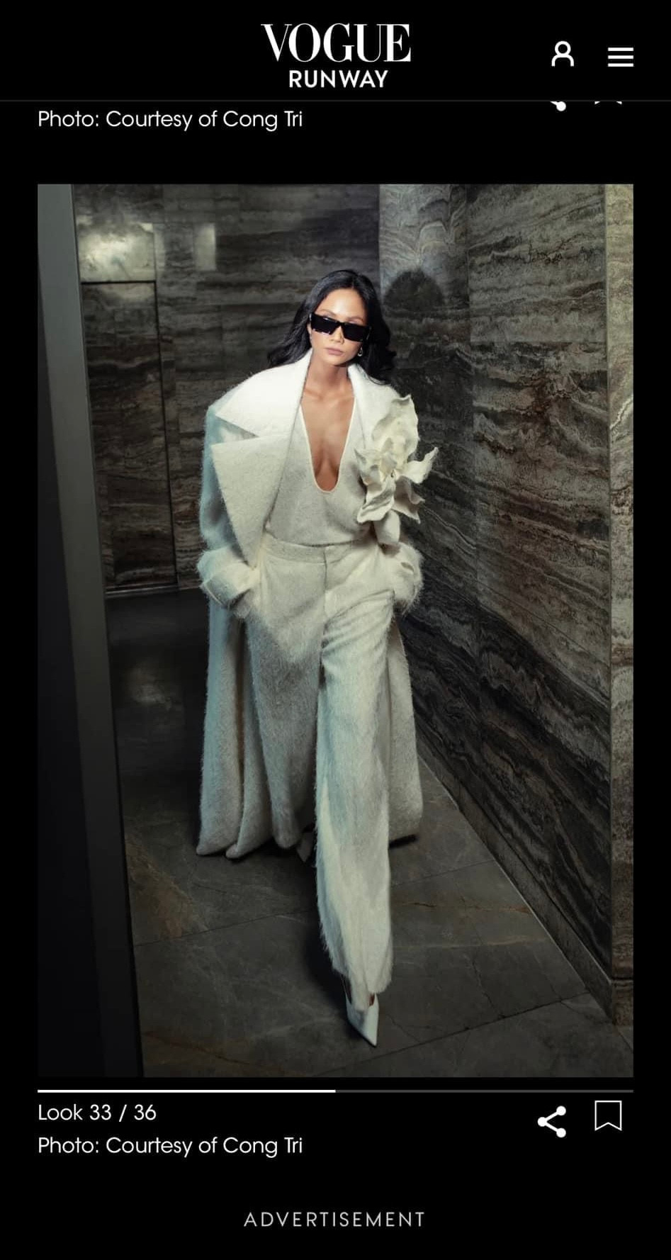 Chuyên trang Vogue Runway được mệnh danh là “Kinh Thánh” của giới mộ điệu thời trang đã đăng tải trọn vẹn 36 thiết kế mới nhất trong bộ sưu tập (BST) Thu/Đông 2024 của Công Trí (Việt Nam).