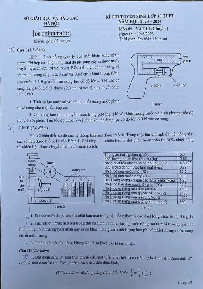 "Như vậy, thang điểm từng câu của đề thi môn vật lý cụ thể là: Câu I là 1,5 điểm; câu II là 2,0 điểm; câu III là 2,5 điểm; câu IV là 3,0 điểm và câu V là 1,0 điểm. Tổng điểm toàn bài là 10,0 điểm", đại diện Sở GD&ĐT Hà Nội nói.