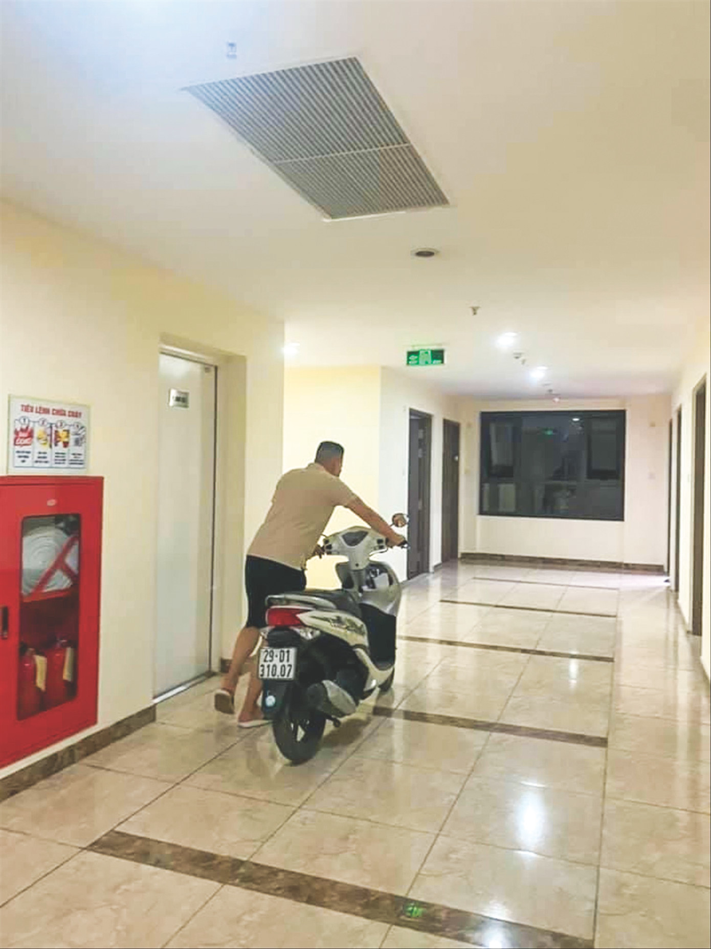 Bà Phạm Thu Loan (căn hộ số 2501) cho biết, khi mua nhà tại dự án, chủ đầu tư quảng cáo có bãi đỗ xe thông minh, 2 tầng đỗ ô tô theo thiết kế nhưng thực tế hiện nay không đủ bãi đỗ xe. Có nhiều người mua được nhà nhưng không mua được chỗ đỗ xe nên phải ngậm ngùi đỗ ra lề đường. Ngay cả những người có chỗ đỗ nhưng về muộn cũng phải ra khỏi hầm. Nhiều ô tô đỗ ra lòng đường, vỉa hè khiến khu vực xung quanh tòa nhà hết sức lộn xộn.