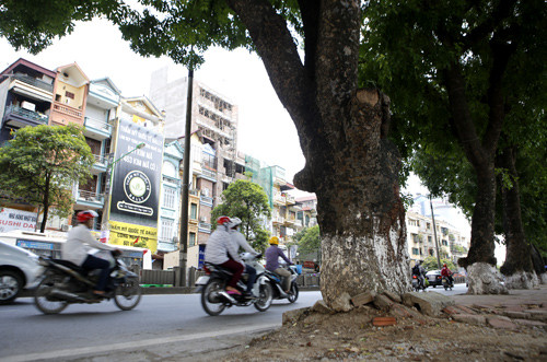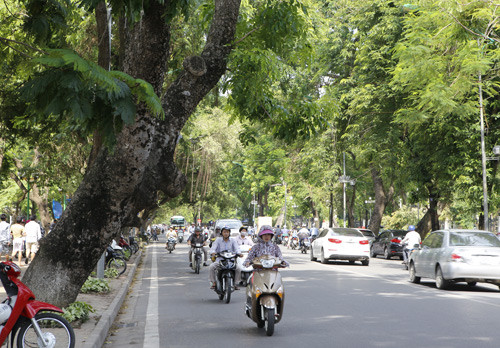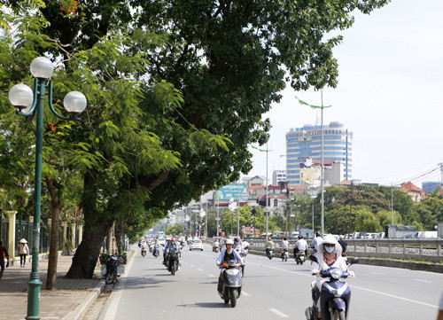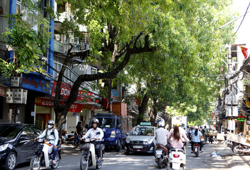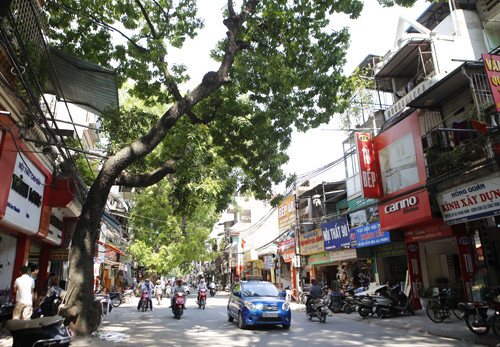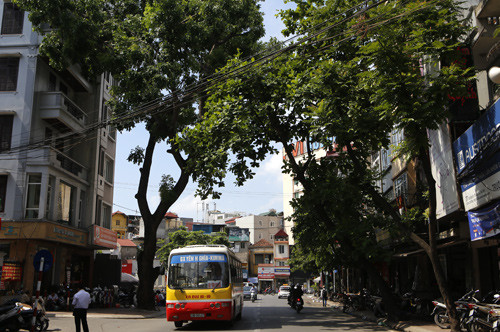 Trên đường Trần Nhân Tông dọc theo ven hồ Thuyền Quang cũng có nhiều cây nghiêng ra giữa đường