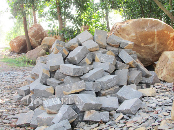 Viên đá vuông hình sắc cạnh được thợ đá đục đẽo dần dần đã hoàn thiện. Những viên đá thành phẩm chất hai bên đường chẳng khác gì khuôn đúc làm nhiều người phải thán phục thợ chẻ đá. Số đá xanh hoàn thiện này sẽ được phục vụ cho việc xây bờ rào, lăng mộ….