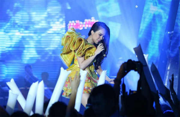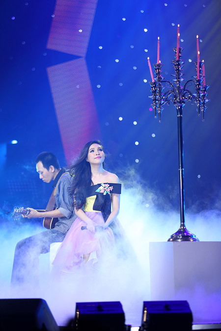 Cô có màn song ca ấn tượng với Mỹ Tâm ca khúc "Tóc nâu môi trầm" và "Nhé anh".