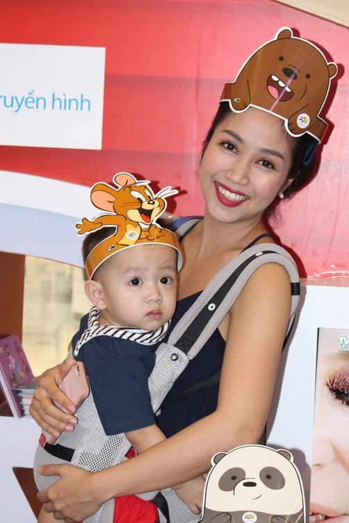 Ốc Thanh Vân địu con trai út đi sự kiện.