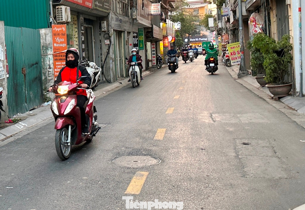 | Cùng với hư hỏng mặt đường, một số tuyến phố tại quận Hoàng Mai có nền đường nhiều lớp không bằng phẳng, như phố Lương Khánh Thiện, Nguyễn Đức Cảnh. |