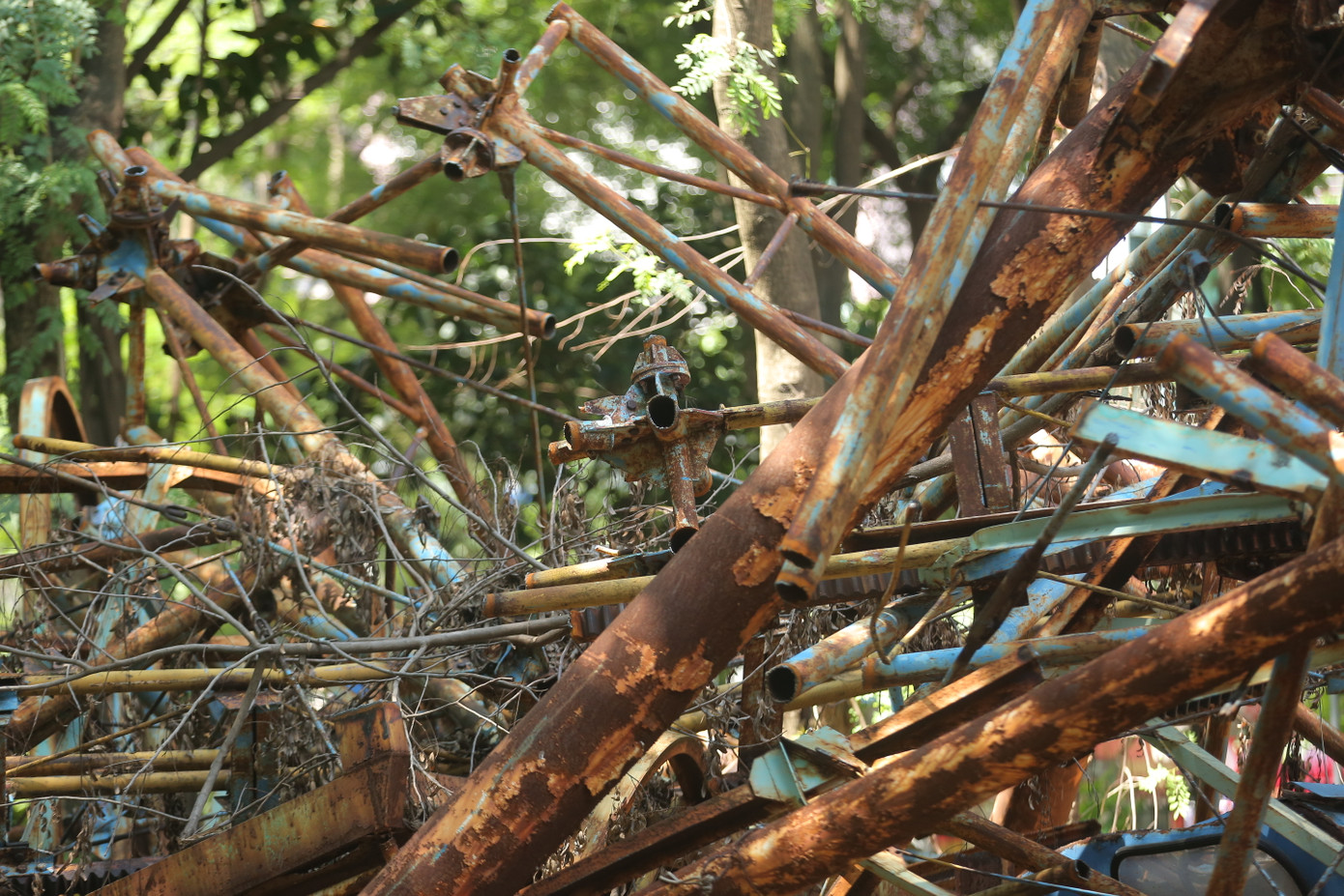 | Tuy nhiên phế liệu vẫn ngổn ngang trong công viên, hoen gỉ ảnh hưởng đến môi trường, mỹ quan đô thị. |