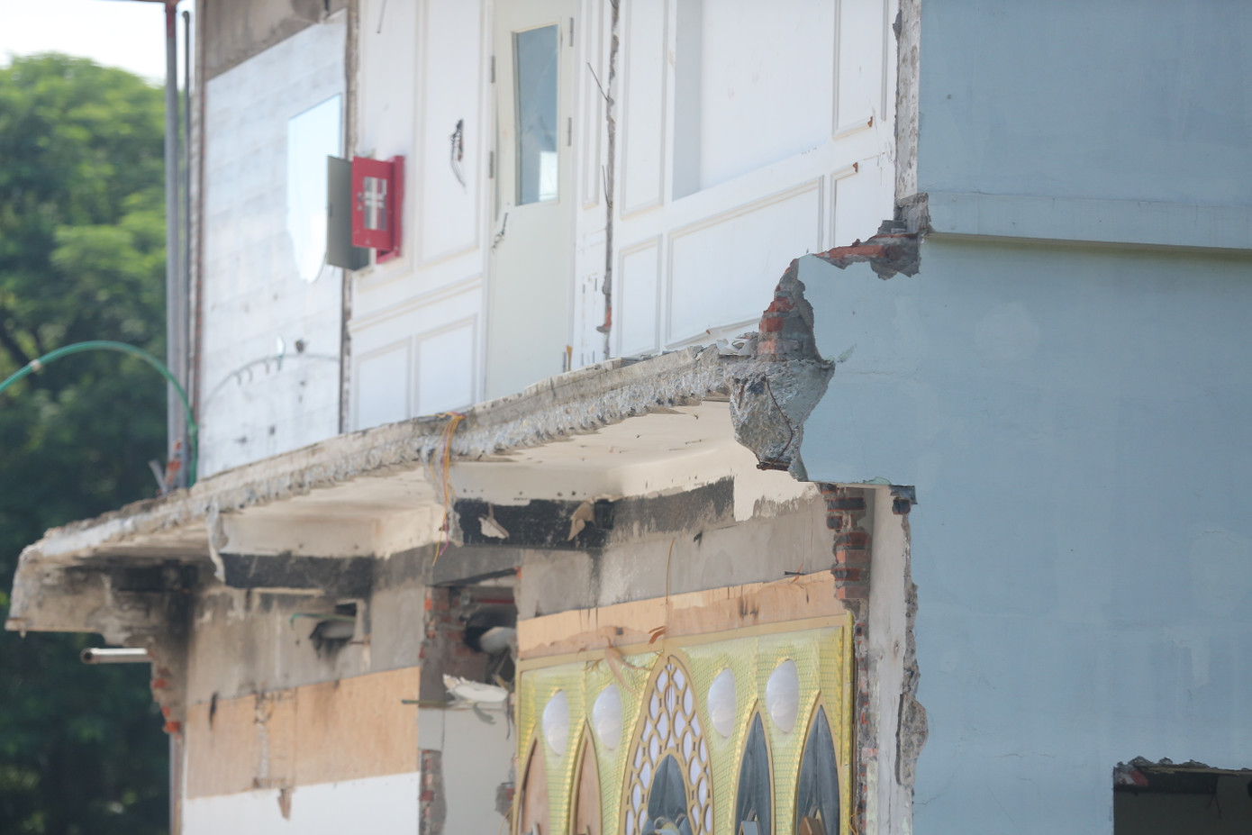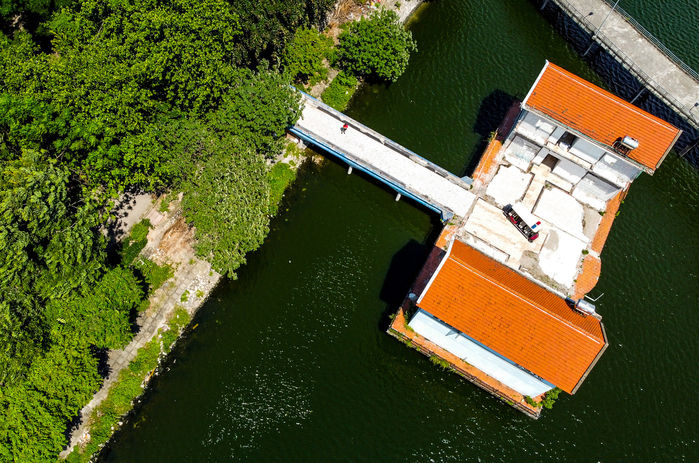 | Khu nhà xây sai phép giữa hồ, từng là một quán karaoke, đã được cơ quan chức năng phá dỡ. |