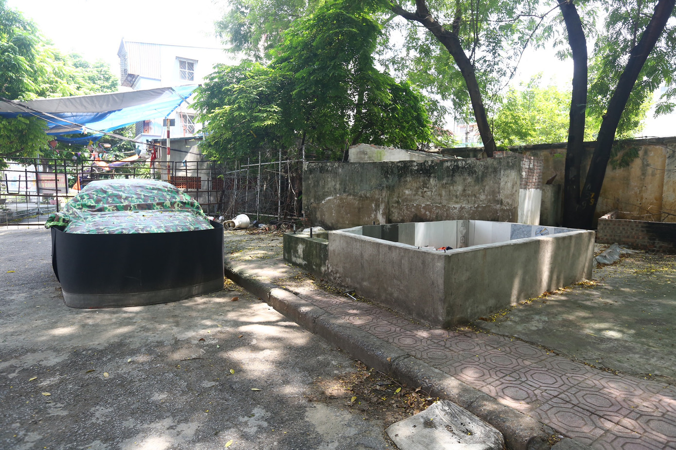 | Khu nhà vẫn ngổn ngang giữa hồ. |