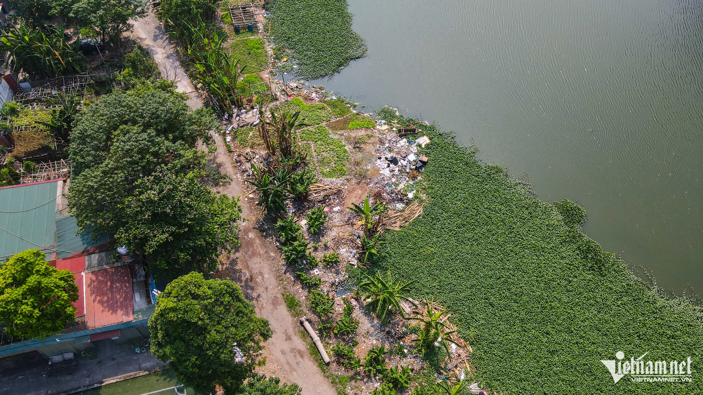 Tình trạng lấn san lấp trộm mặt hồ đã diễn ra nhiều năm. Rác thải, phế liệu "tập kết" tràn lan khiến khu vực này mất vệ sinh và ngổn ngang.