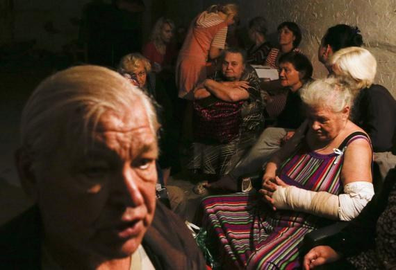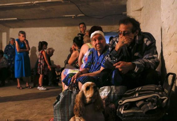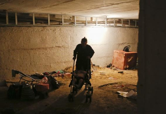 Người dân không giấu được nỗi lo sợ của mình khi đứng ở dưới tầng hầm giữa lúc bom đạn đang không ngừng được hai bên phóng ra.