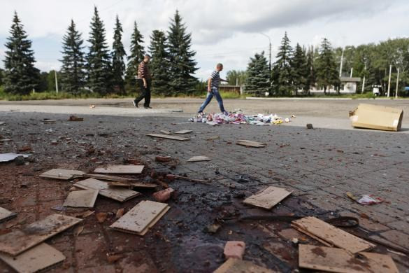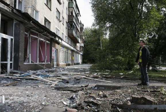 Các tòa nhà đổ nát, người dân trong thành phố đông Ukraine Donetsk chạy tán loạn là hình ảnh trong cuộc công kích vào trung tâm thành trì ly khai.