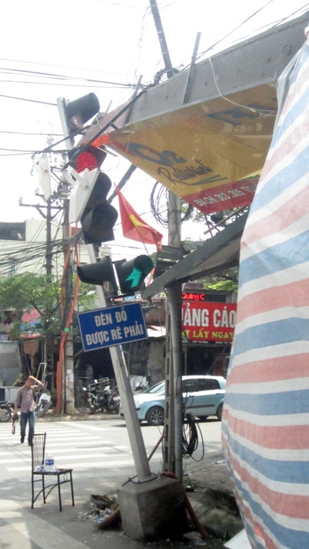Vụ nổ làm nghiêng cột đèn giao thông.