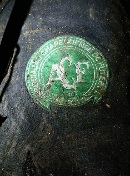 Được biết máy bay đang trong hành trình chở đội bóng Chapecoense cùng ê kíp từ Brazil đến sân bay quốc tế Jose Maria Cordova de Rionegro (Medellin) để tham gia trận đá lượt đi chung kết Copa Sudamerica vào ngày 30/11. (Trong hình là đồng phục gắn logo đội bóng được tìm thấy trong đống đổ nát).