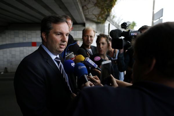 Phát ngôn viên của Bộ Nội vụ Pháp Pierre Henry Brandet trả lời báo chí tại hiện trường. Ảnh: AFP