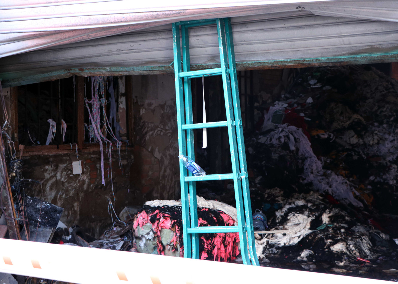 Đến trưa 27/1, cơ quan chức năng vẫn đang phong tỏa hiện trường, điều tra vụ cháy thiêu rụi một kho vải và 2/3 diện tích một công ty bên cạnh ở xã Bà Điểm, huyện Hóc Môn, TPHCM.