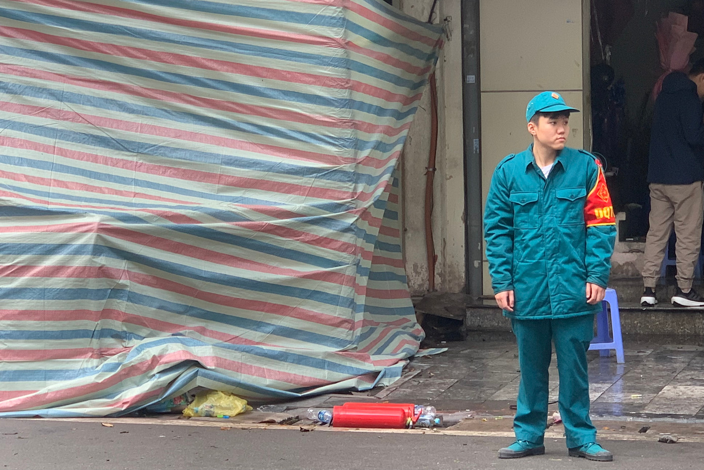 | Lực lượng chức năng rào chắn khu phố Hàng Lược, nơi xảy ra vụ cháy. |