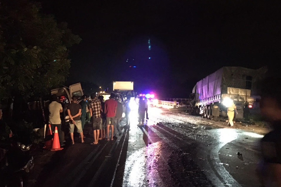 Thời điểm trên, xe khách 16 chỗ BKS 86B-01087 đi hướng Phan Thiết - Đồng Nai đã đâm trực diện với ô tô tải BKS 79N-0315 đi hướng ngược lại.