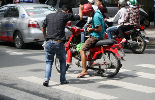 13h, chị Nguyễn Kim Phượng (37 tuổi, ngụ Vũng Tàu) cùng em gái vừa bước ra từ quán cơm Minh Đức đường Tôn Thất Tùng (phường Phạm Ngũ Lão, quận 1) để sang bên kia đường lên ôtô 4 chỗ do chồng lái. Bất ngờ, một thanh niên đi xe Wave lao tới giật sợi dây chuyền có nhiều viên bi của chị này.