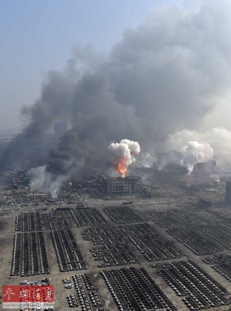 Theo Tân Hoa Xã, nhà kho gặp sự cố là nơi chứa hàng hóa nguy hiểm. Cơ quan giám sát động đất Trung Quốc nhận định vụ nổ đầu tiên tạo ra địa chấn mạnh 2,3 độ Richter trong khi vụ nổ thứ hai tạo ra chấn động 2,9 độ Richter và sức tàn phá của hai vụ nổ cộng lại tương đương với 24 tấn thuốc nổ TNT.