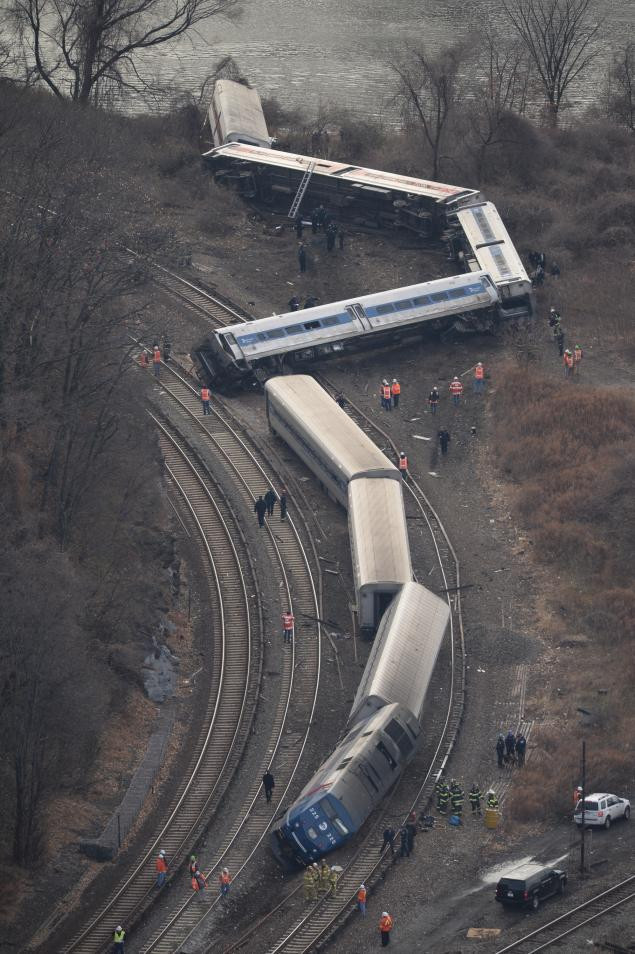 Con tàu trật bánh khi đang đi qua khúc cua ven sông, khi các tàu cần giảm vận tốc xuống còn 48 km/h. Đội cứu hộ dự định đem cần trục trong đêm để cẩu toa tàu bị lật, vì có khả năng vẫn có người ở dưới.
