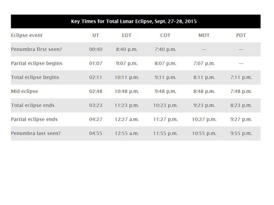 Dưới đây là khu vực và thời điểm có thể nhìn thấy “Siêu Trăng-Trăng Máu” vào đêm 27/9 và rạng sáng 28/9: