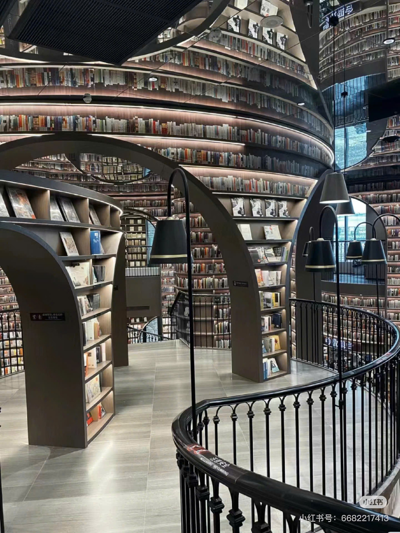 Đáng nói, thiết kế của hiệu sách sử dụng gương để tạo hiệu ứng không gian vô tận, khiến người xem cảm giác như đang lạc vào thế giới phép thuật Harry Potter. Những vòng cung và cầu thang độc đáo gợi lên sự tương tác giữa con người và tri thức, từng bước bước đến kho tàng kiến thức khổng lồ.