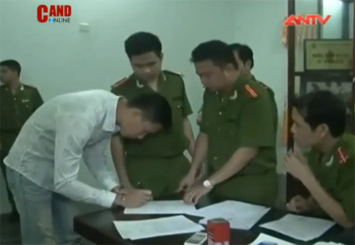 Trần Mạnh Dũng ký vào biên bản lệnh bắt tạm giam