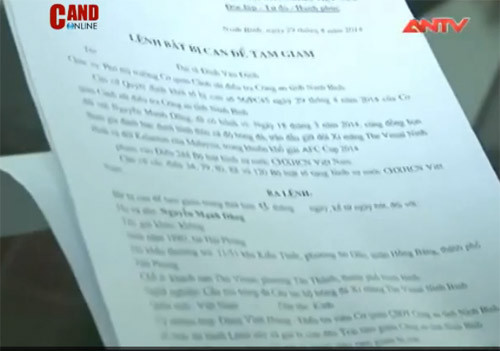 Lệnh bắt tạm giam được cơ quan CSĐT tỉnh Ninh Bình chiều 29/4
