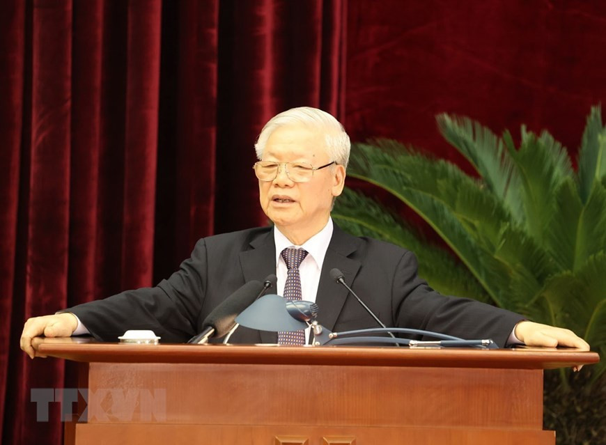 Tổng Bí thư, Chủ tịch nước Nguyễn Phú Trọng phát biểu bế mạc Hội nghị. (Ảnh: Trí Dũng/TTXVN).