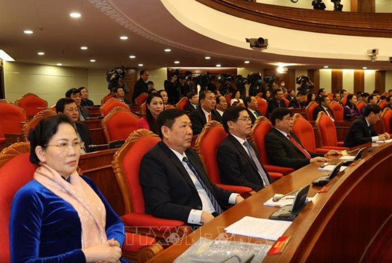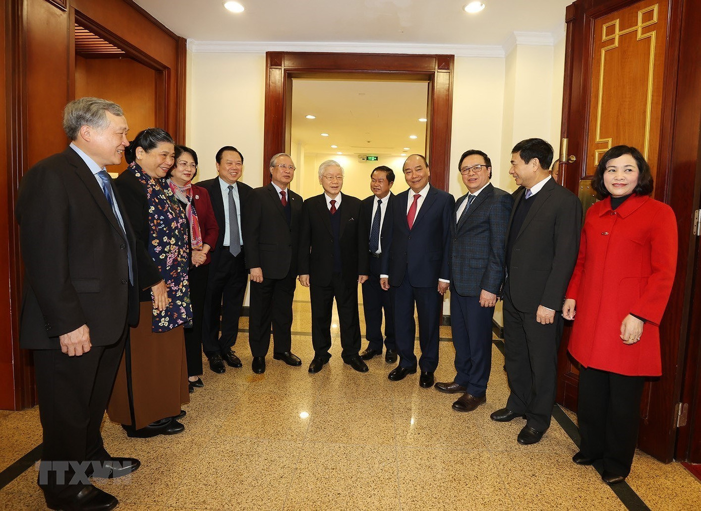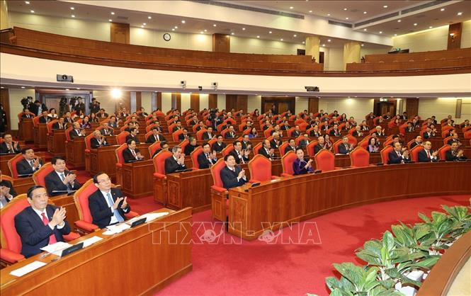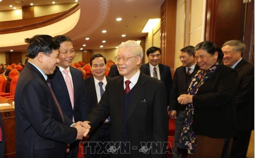 Tổng Bí thư, Chủ tịch nước Nguyễn Phú Trọng và Thủ tướng Nguyễn Xuân Phúc với các đại biểu dự bế mạc Hội nghị. Ảnh: Trí Dũng/TTXVN