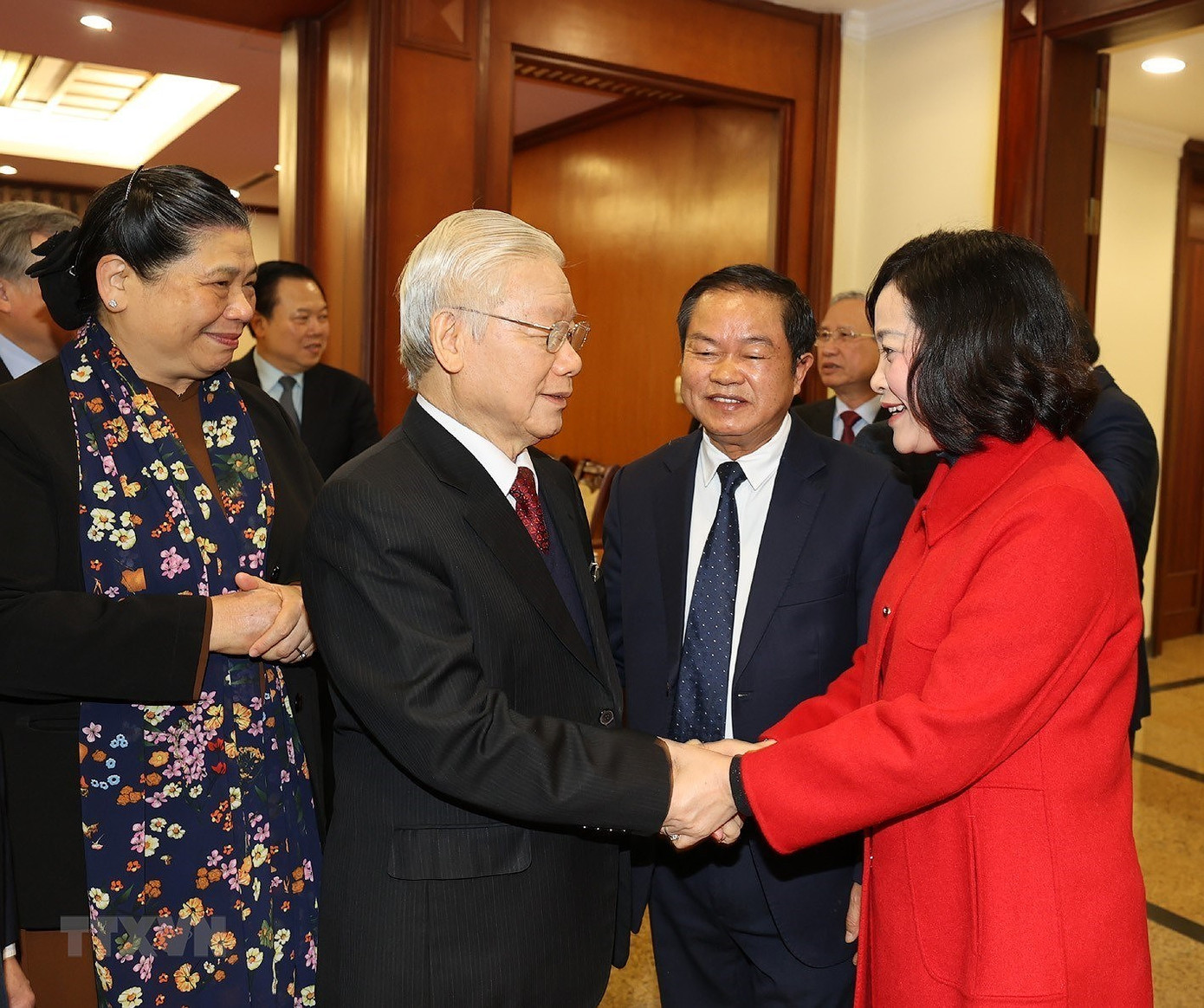 Tổng Bí thư, Chủ tịch nước Nguyễn Phú Trọng với các đại biểu dự bế mạc Hội nghị. Ảnh: Trí Dũng/TTXVN