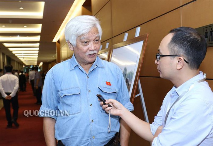 Đại biểu Quốc hội trả lời phỏng vấn của phóng viên báo chí.