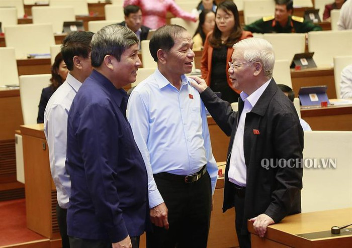Tổng bí thư, Chủ tịch nước Nguyễn Phú Trọng và các đại biểu bên lề phiên chất vấn.
